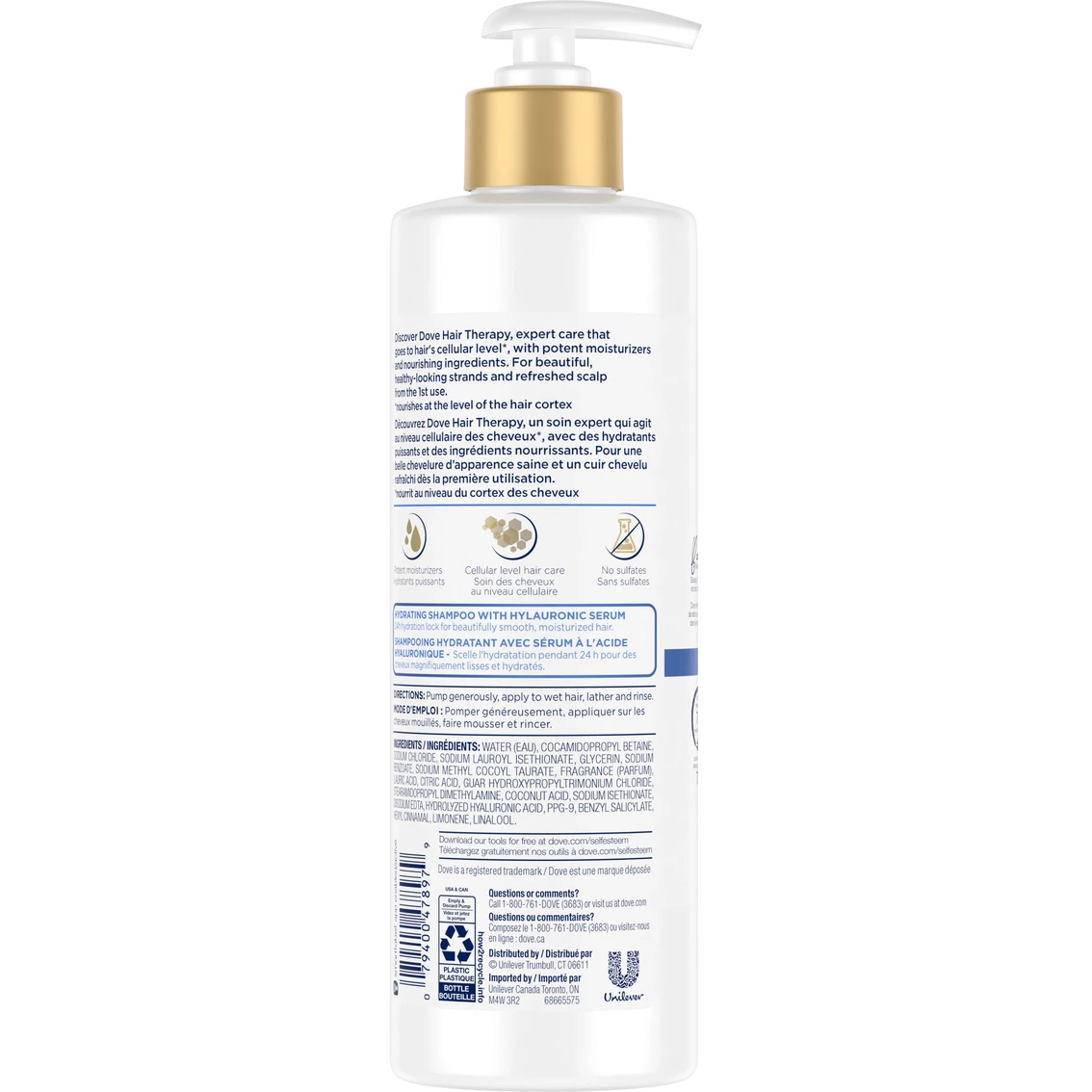 Wondering how to get soft, smooth hair? Shampoo plays a big part in how your hair looks and feels–and Dove has just the thing. Treat your hair to a spa day from home and give it the nourishment it deserves with Dove Hair Therapy Hydration Spa Shampoo and Conditioner. Perfect for a dose of hair hydration, this hydrating shampoo for dry hair is formulated with hyaluronic serum to keep your hair feeling beautifully soft, smooth and nourished when used alongside our Hydration Spa Conditioner. And that’s not all, it leaves your scalp feeling refreshed, too. Specially created to care for your hair at a cellular level*, this moisturizing shampoo is made with potent moisturizers and nourishing ingredients. When used with the Hydration Spa Conditioner, it helps you give your hair the care it needs, exactly where it needs it. Plus, if you’re looking for a shampoo to moisturize hair, the 24-hour hydration lock does just that. Simply smooth it on and enjoy a spa-worthy treatment every time you shower.
