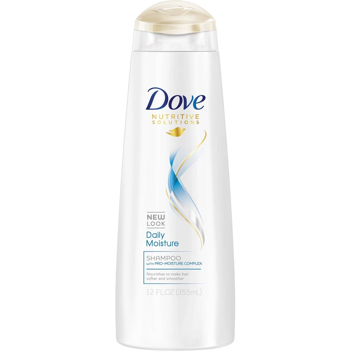 Dove Daily Moisture Shampoo protects hair from the daily wear and tear of life. The special formula, with Pro-Moisture Complex, gently cleans and progressively nourishes without weighing hair down. Size: 12 oz.