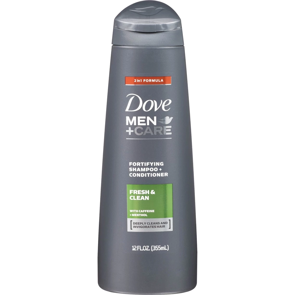 Dove Men + Care Fortifying 2-in-1 Shampoo + Conditioners make hair stronger and more resilient so that men can pursue their active lifestyles. Dove Men + Care Fresh and Clean 2-in-1 Fortifying Shampoo + Conditioner is designed specifically for men that want fresh clean hair. It deeply cleans and invigorates hair with a refreshing effect, and is infused with caffeine + menthol. It helps strengthen hair, leaving it visibly healthy, thicker and resilient, with a dual 2-in-1 formula that functions as a shampoo and conditioner so that it cleanses and conditions hair simultaneously, so that it can keep up with men’s active lifestyles and everyday activities that can weaken hair, making it more prone to hair fall from breakage. Size: 12 oz.