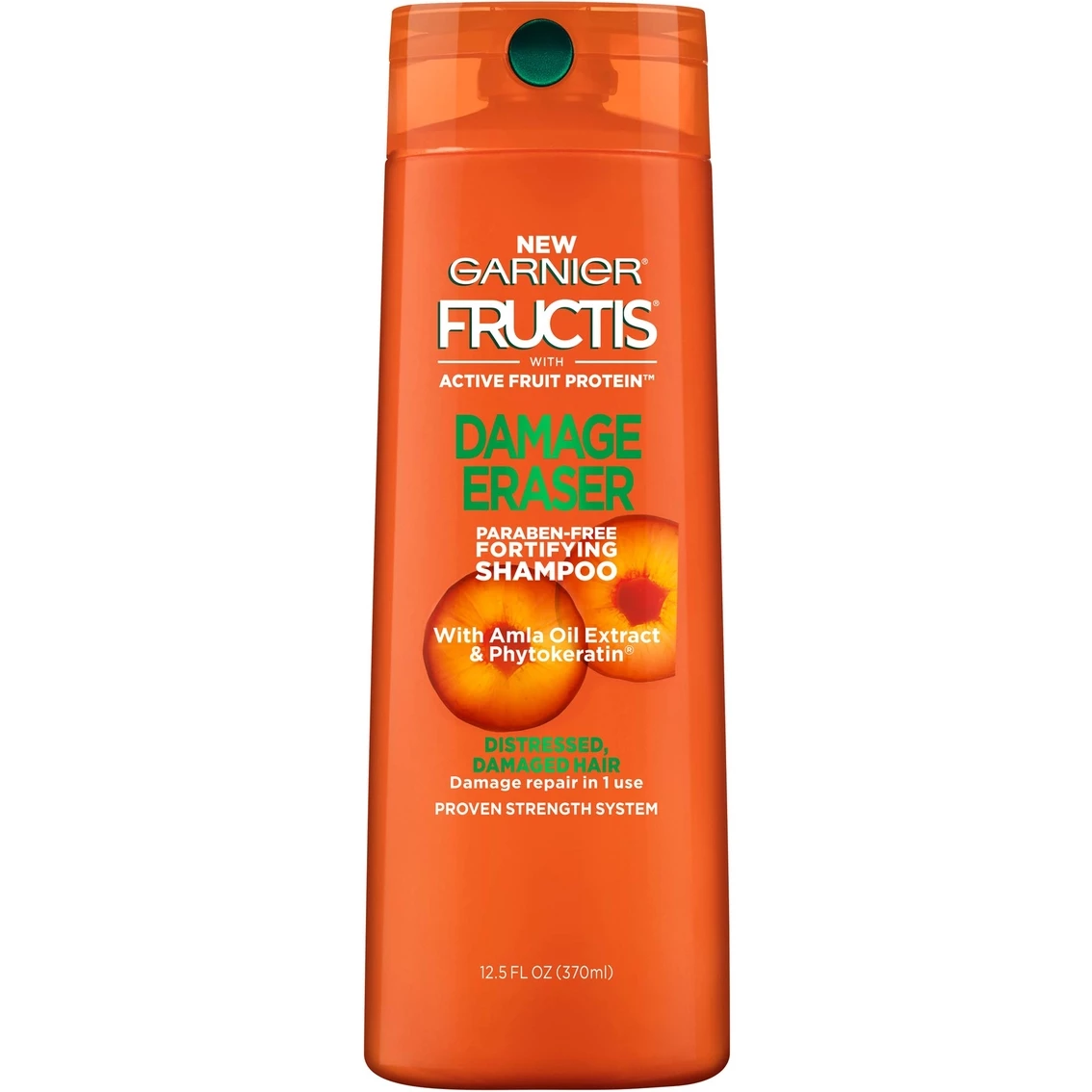 Fortified Fructis Damage Eraser Shampoo with Amla Oil Extract and Phytokeratin, plant-based amino acids similar to those naturally found in hair, helps rebuild strength from root to tip to intensely repair damage from daily brushing, heat styling, repeated coloring or chemical treatments. Phytokeratin is a trademark of Lonza or its affiliates.