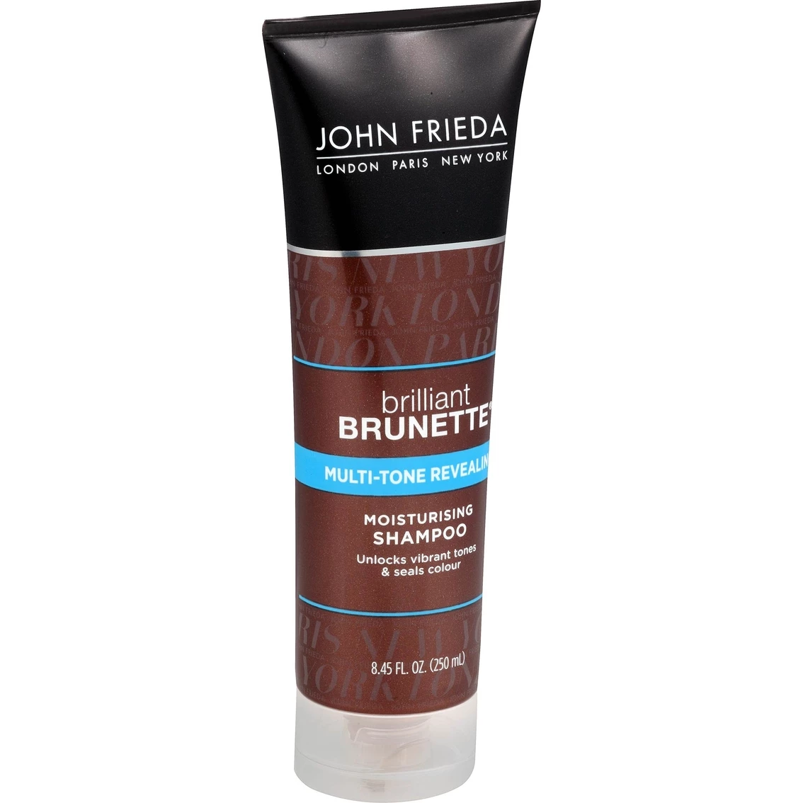 The John Frieda Brilliant Brunette Shampoo is formulated with crushed pearls and sweet almond oil, Brilliant Brunette Multi-Tone Revealing Moisturising Shampoo unlocks vibrant tones and prevents color from fading. Clarify and hydrate your brunette hair. Non-color depositing: Safe for use on natural or color-treated hair and for use on highlights & lowlights.