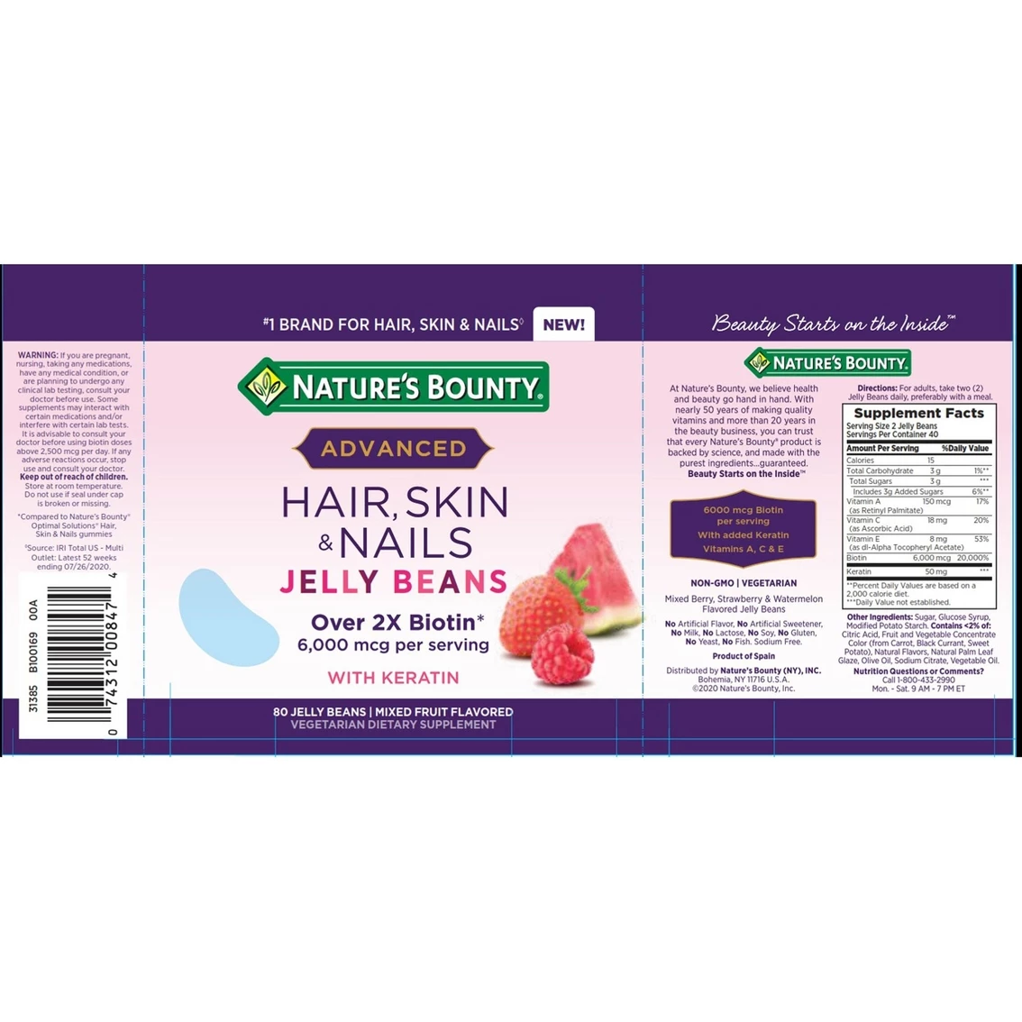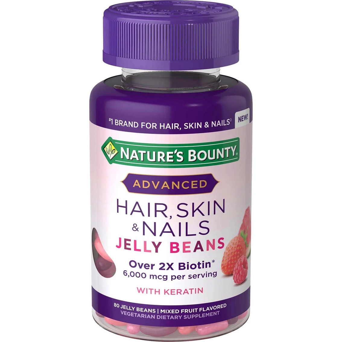 Get over 2X the Biotin — 6,000 mcg per serving — from Nature’s Bounty — the #1 brand for hair, skin and nails. This non-GMO Jelly Bean Vegetarian formula now has Vitamin A added for skin health. Flavors: Wild Strawberry, Watermelon and Mixed Berry.