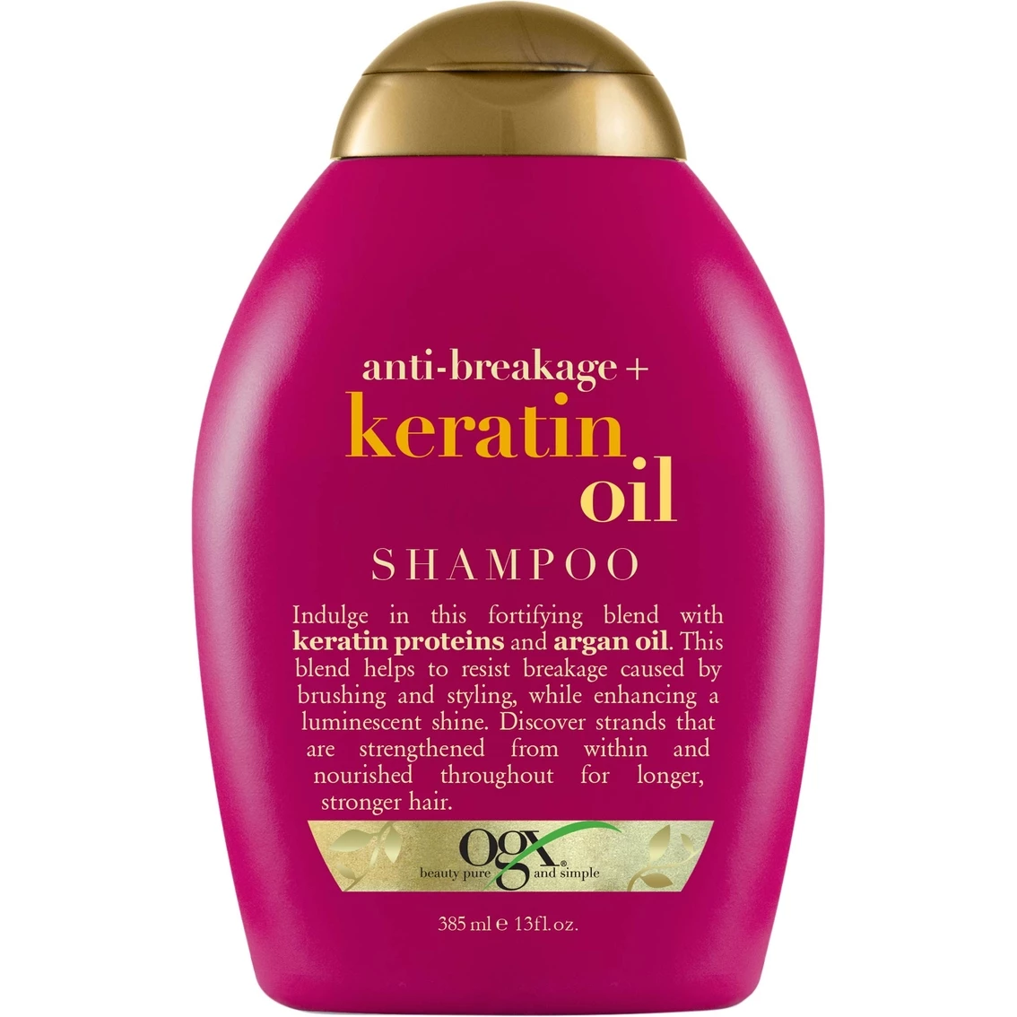 OGX Anti-Breakage Keratin Oil Shampoo is a fortifying blend with keratin proteins and argan oil. This blend helps to resist breakage caused by brushing and styling, while enhancing a luminescent shine. Discover strands that are strengthened from within and nourished throughout for longer, stronger hair.