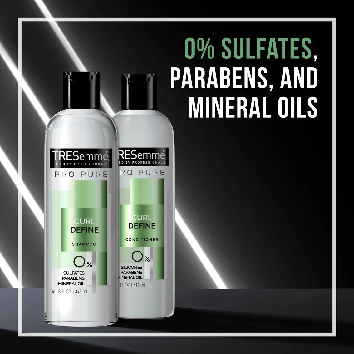 Gently cleanse and hydrate your curls with the Tresemmé Pro Pure Shampoo Curl Define system. Formulated with 0% sulfates, parabens and mineral oils, this curl defining shampoo and conditioner duo leaves curls conditioned, defined and frizz-free. This curly hair system is focused on meeting the needs of curly and wavy hair.