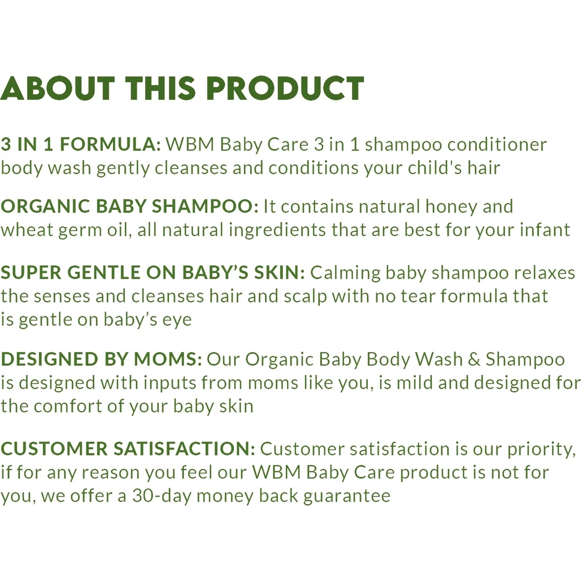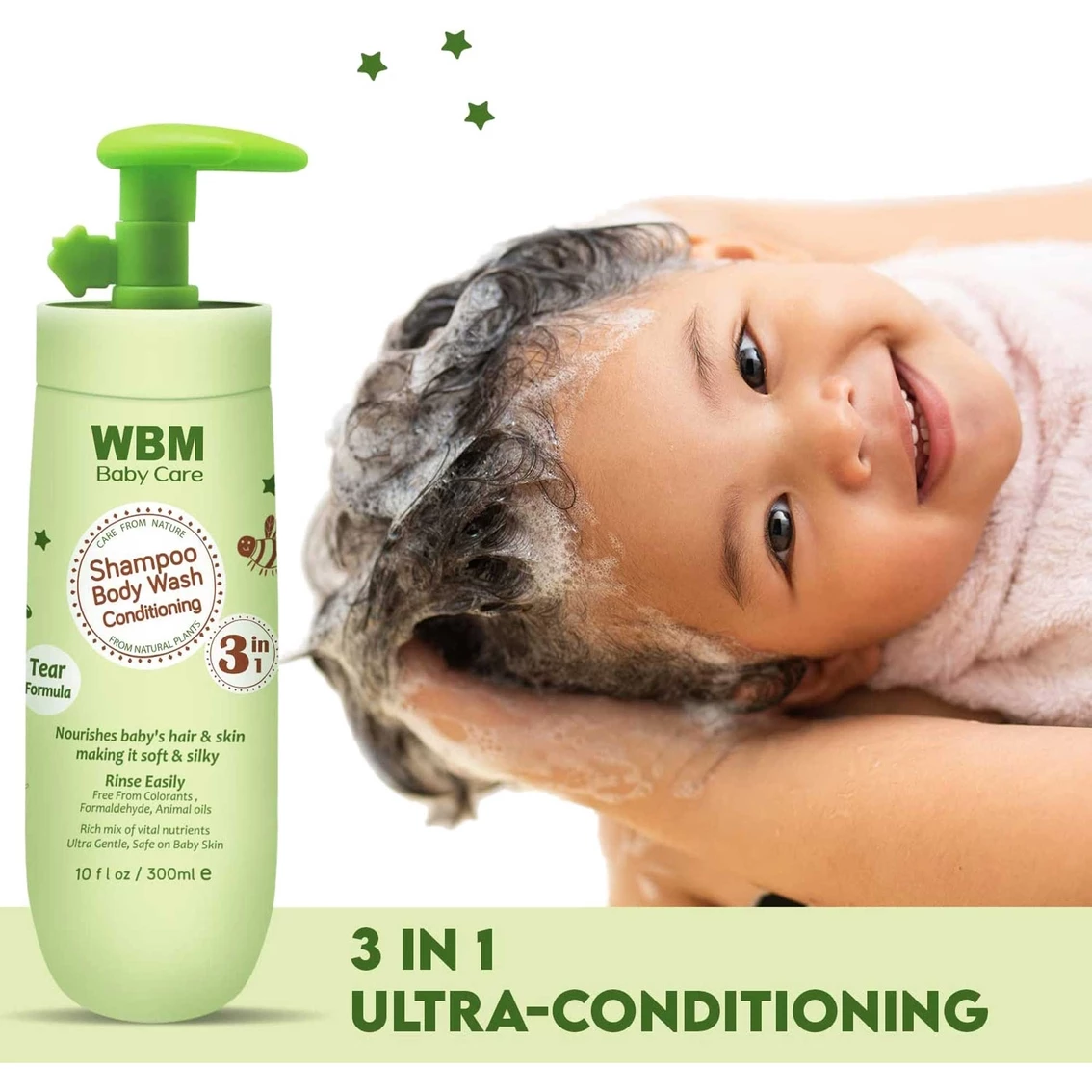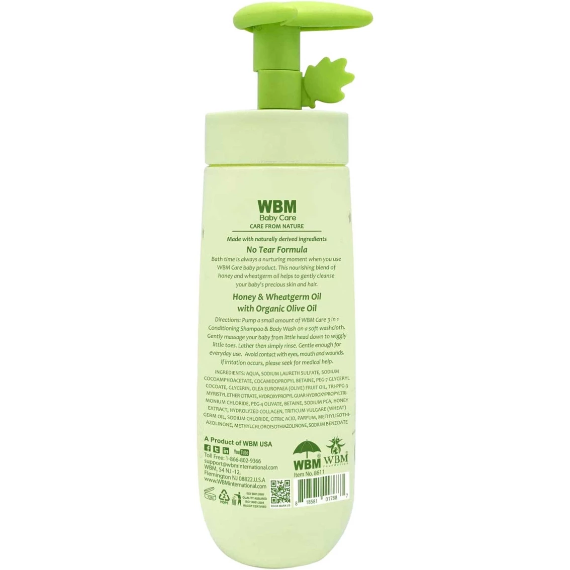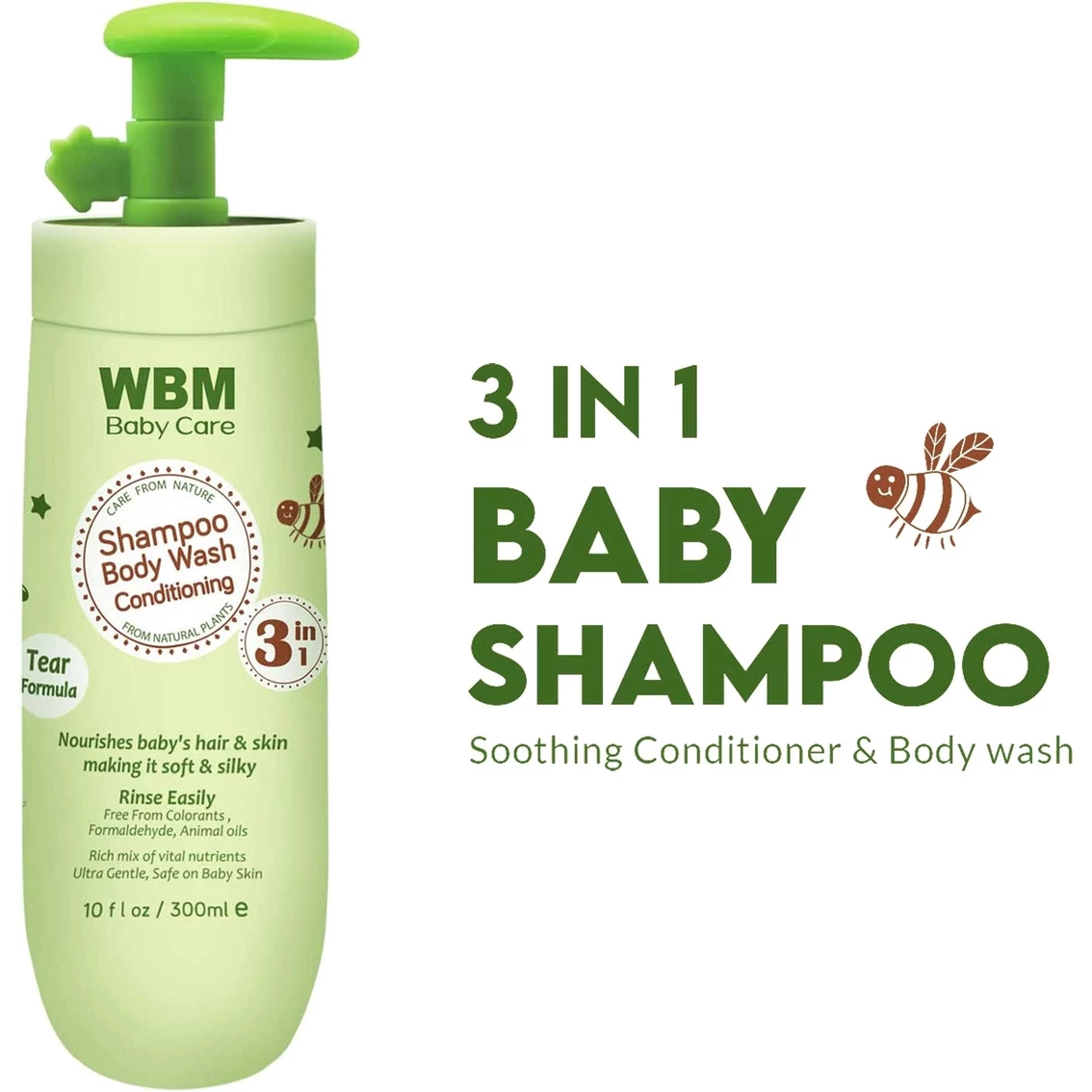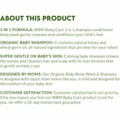 WBM Care offers the natural and organic conditioning shampoo and body wash for your baby hair and skin with a no tear formula. Imposed of all plant extracts and organic honey: free from colorants, animal fats and formaldehyde. WBM Care’s shampoo product is very gentle to your baby sensitive skin, hair and scalp.