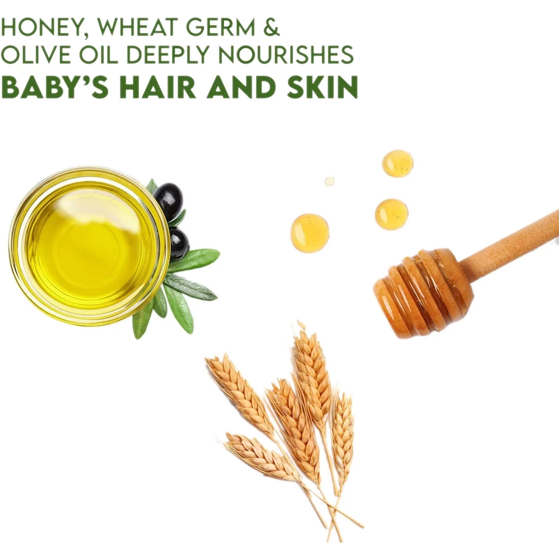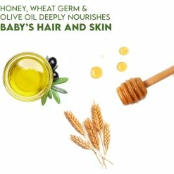 – This nourishing blend of honey and wheat germ oil helps to gently cleanse your baby’s precious skin and hair